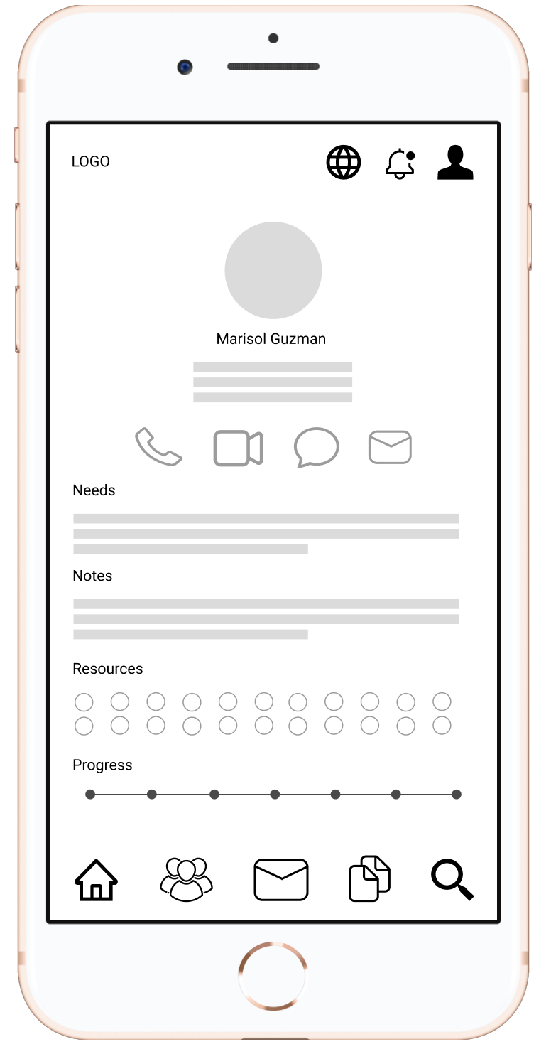 Para Los Ninos. The overall feedback was positive, but there were couple of iprovements that needed to be done to further protect client privacy such as not having their photos on their profile. Maria wanted to see highlighted icons for the contact methods the clients prefered. In this case we thought that showing only the contact methods that the client indicated during the onboarding process would appear on their profile instead of having highlighted and muted icons. Another feature that needed change was the progress bar. The testing participants wanted it to show some kind of progress.